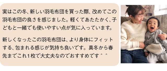- 布団作り50年の職人による、丁寧で確かな技術「特殊キルト構造」でふんわりあたたかい羽毛布団