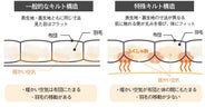 自社国内工場の職人が考案した「特殊キルト構造」の側生地は、通常の側生地と比べて、より空気を含み熱のこもる空間を生み出す特殊技法です。