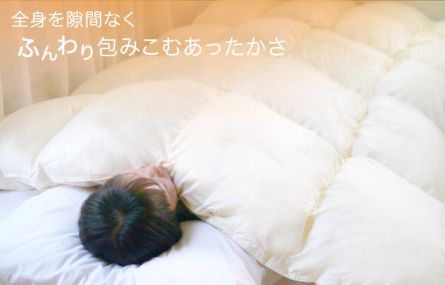 また、ふんわりとあたたかく軽いのに、体に沿って包まれる感覚があり、お子様も心地よく使っていただけます。
