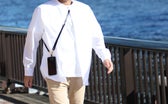 斜め掛け、首掛けが出来るショルダーストラップで、仕事からお出かけの時まで、