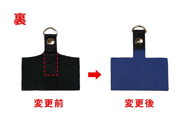 さらに、アタッチメントの負荷がかかる箇所のみに施していた補強を、アタッチメント全体に変更しました。補強材も前回よりも強度のある生地に変更しております。