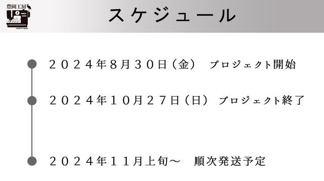 このプロジェクトはAll in型です。目標金額の達成に関わらず、プロジェクト終了日の2024年10月27日までに支払いを完了した時点で購入が成立します。