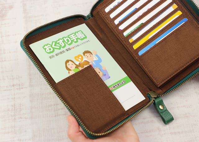 - 急な通院時も慌てない。お薬手帳から、診察券、領収書などを、まとめて収納できる大容量。