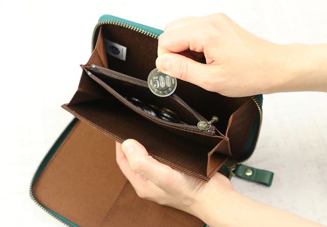 内装には、少し光沢感のあるシャンタン生地を使用しており滑りもよく、カード類の出し入れもラクチン。