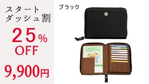 【スタートダッシュ割】牛革コンパクトお薬手帳ケース ブラック 1本