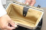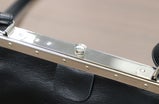口金の開閉方法は、中央のボタンを押すと金具のロックが解除されて金具が開く仕組みになっています。