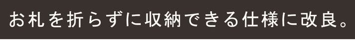 従来の商品はお札を収納する際には、二つ折りまたは三つ折りに折って収納しておりましたが、今回からお札を折らずに収納する事が出来るようになりました。