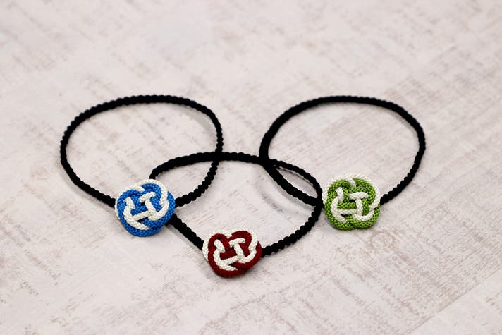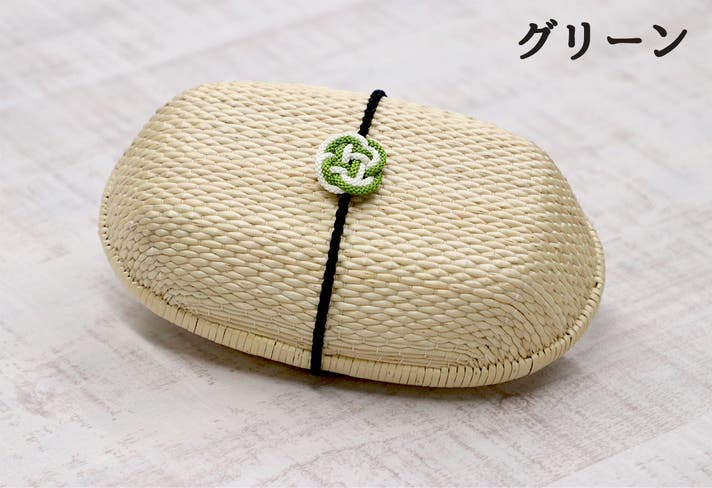 モチーフの釈迦結びはレッド、ブルー、グリーンの3色からお選び頂けます。