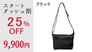 【スタートダッシュ割】軽量牛革横型ショルダーバッグ ブラック 1本