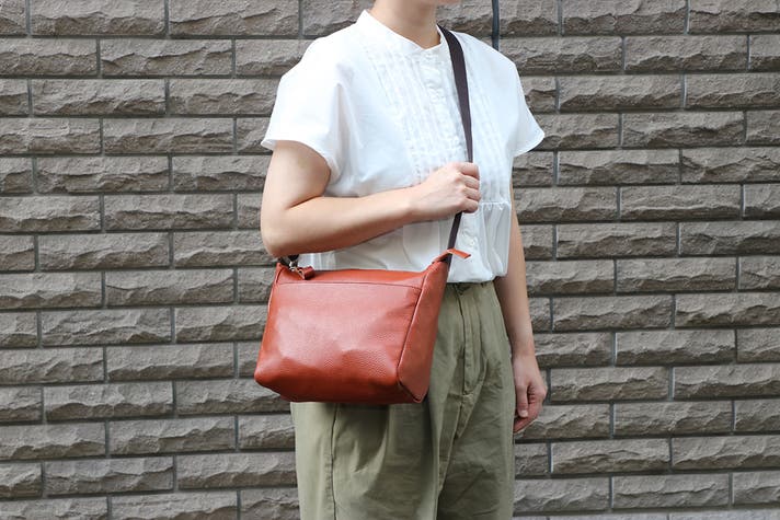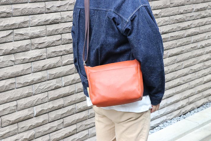 豊岡工房 軽量牛革横型ショルダーバッグ