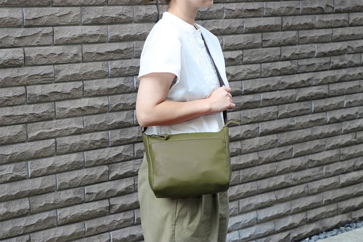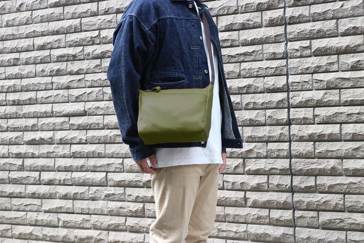 軽量牛革横型ショルダーバッグ オリーブ 1本