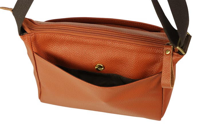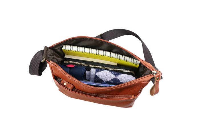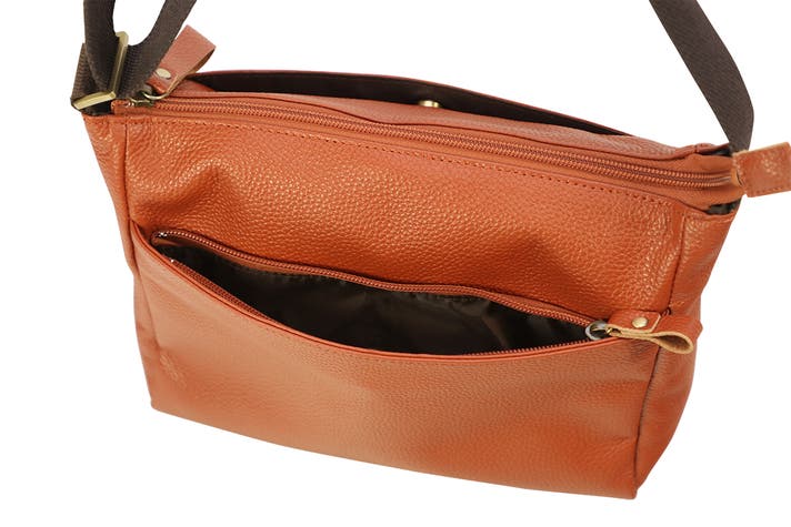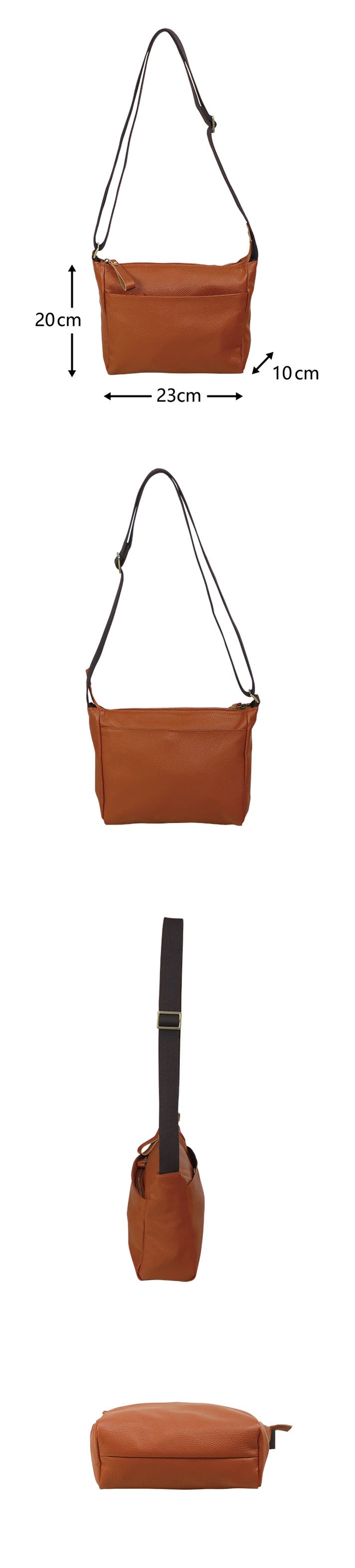 軽量牛革横型ショルダーバッグ キャメル 1本