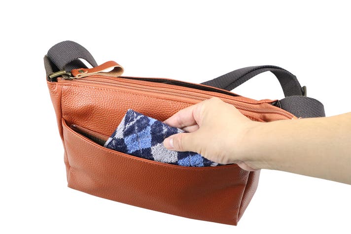 前にはファスナーポケットがあり、ハンカチやタオルなどよく使うもの入れるのに重宝します。