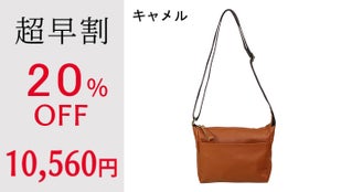 【超早割】軽量牛革横型ショルダーバッグ キャメル 1本