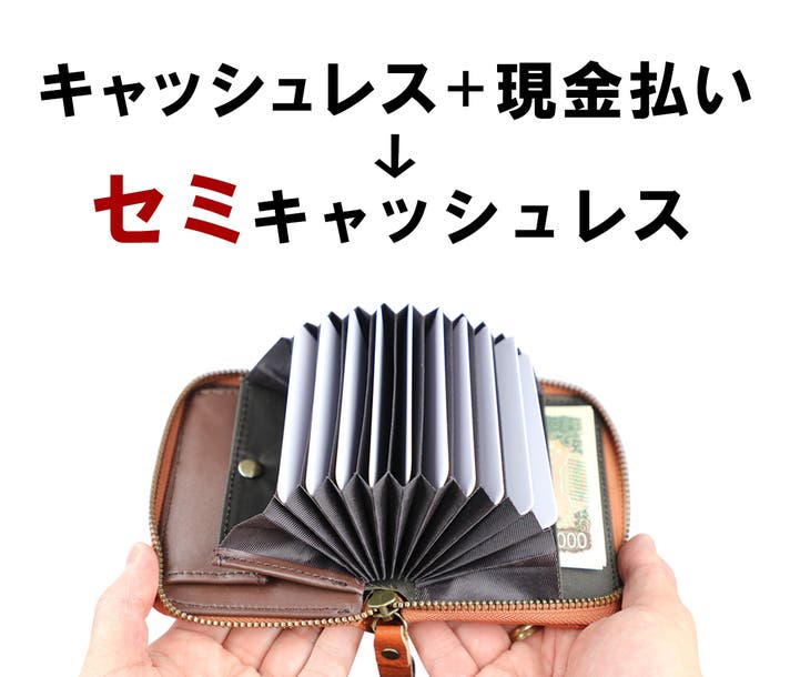 - キャッシュレスと現金払いを両立する、セミキャッシュレスのコンパクト財布。