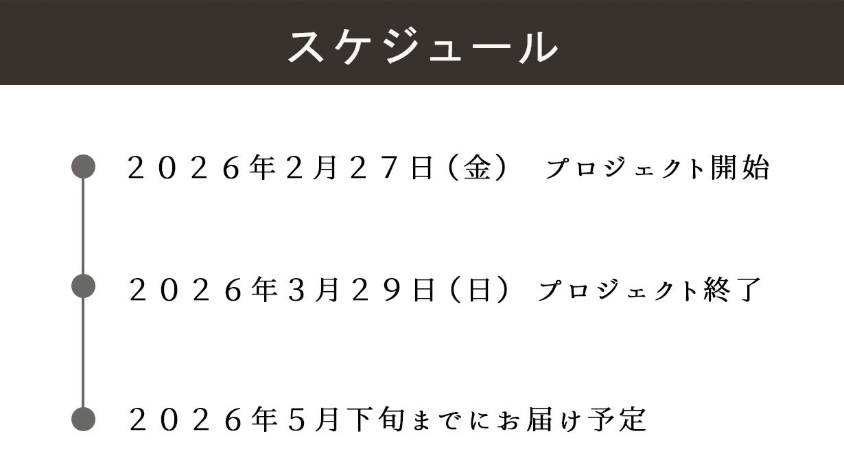 このプロジェクトはAll in型です。目標金額の達成に関わらず、プロジェクト終了日の2026年03月29日までに支払いを完了した時点で購入が成立します。