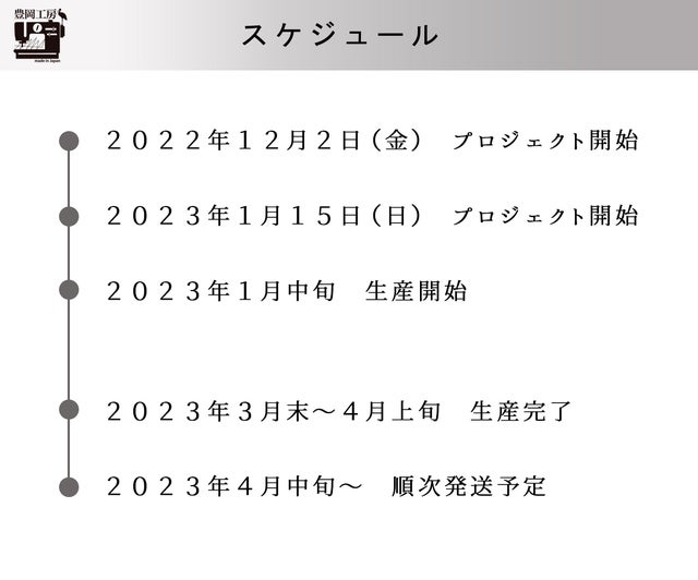 ※応援購入の数が想定を上回った場合や、製造工程上の都合や配送作業に伴う止むを得ない事情により出荷時期が遅れる場合がございます。