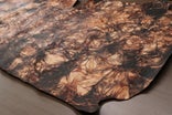 牛革の本来のベージュから、赤褐色に広がるように染まったり、鉄分が多く含まれた部分は黒く染まったりと1枚、1枚が生きているかのように違っていきます。