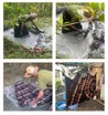 仕上げに清流で洗っていきます。泥で媒染した物は、綺麗な川の流水でないと洗い切れません。ここも奄美大島の自然豊かな環境ならではとも言えます。
