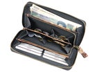 中央の、ファスナー式小銭入れはL字に底まで開くファスナータイプになっておりますのでがばっと大きく開いて中身も見やすくなります。