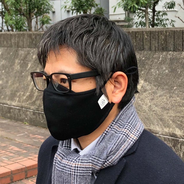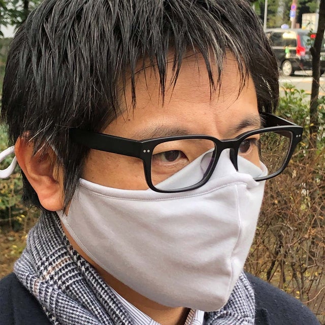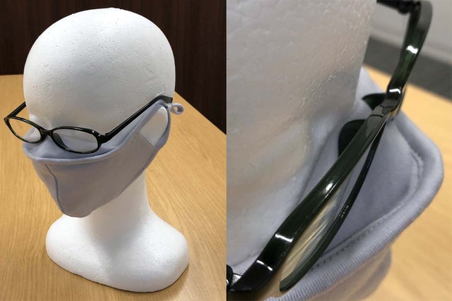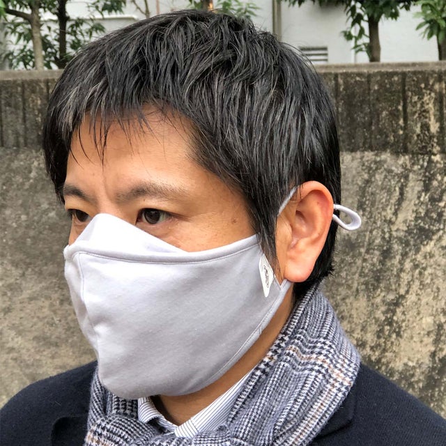 眼鏡が曇る原因は、鼻の横から空気が漏れ、眼鏡のレンズに当たり、寒暖差で曇ります。また、肌とマスクの隙間から飛沫が飛んだりしますので、極力隙間が無い改良を施しました。