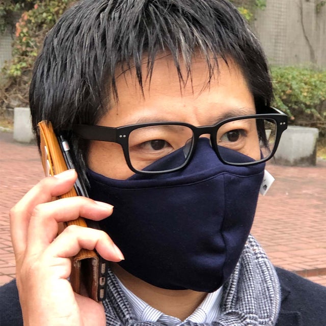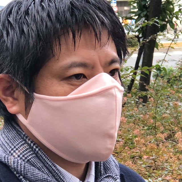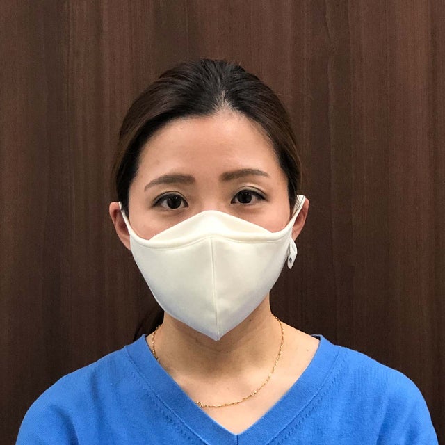 立体的な縫製により、口元に余裕を生み出し、会話が楽にできる設計にしております。
