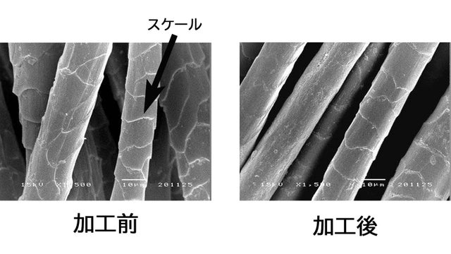 しかも、今回の商品は更にウールの表面のスケール(うろこ状のもの)を削る加工を施していますので、まさにトロトロな肌触りになっています。