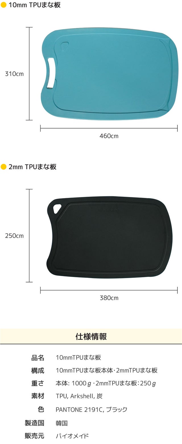 人工心臓や点滴で使用されている TPUは耐久性と柔軟性を同時に持っているため、生産がかなり難しく高い価格のため厚いTPUのまな板はなかなか製作することができませんでした。