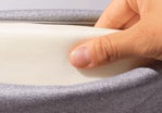 TRAAVIクッションは、腰と太ももをそれぞれしっかり支えるために、2つのパーツで構成されています。クッションの底面にある面ファスナーで長さを調節できるのはもちろん、クッションを分離して別々に使用することもできます。