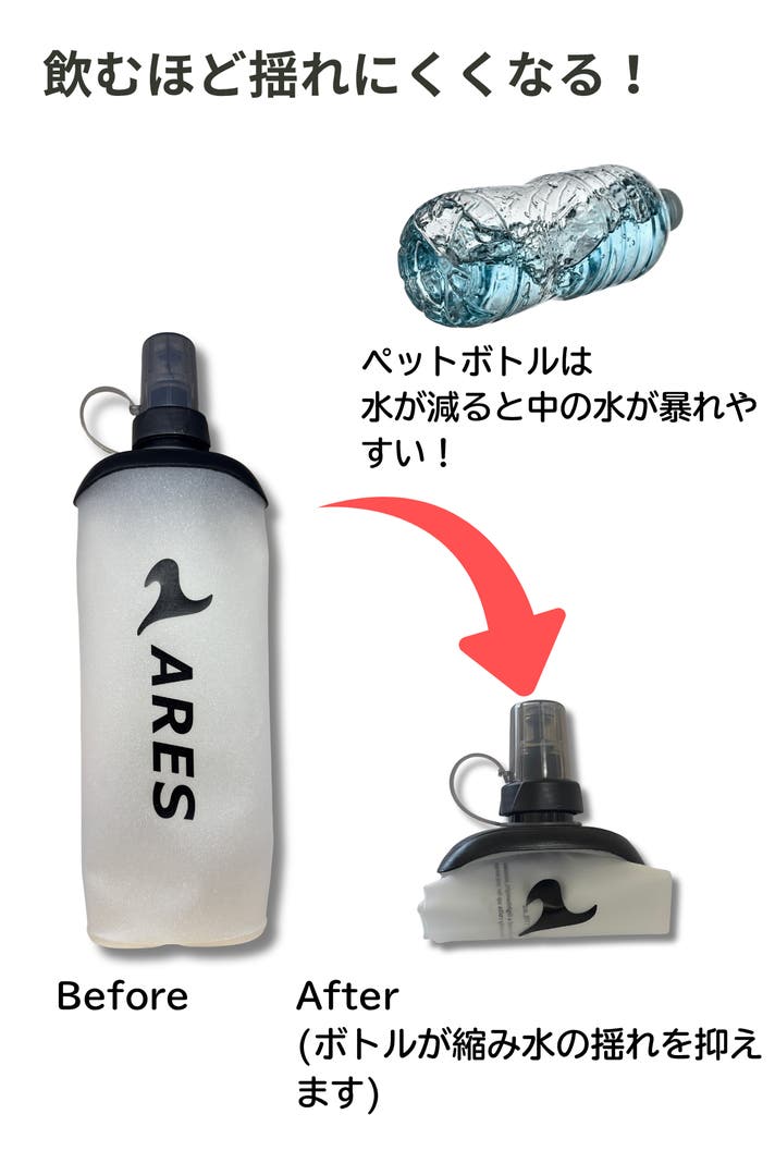 - ランニング時に揺れず、体にフィットするソフトフラスクボトル