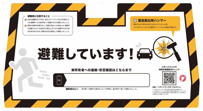 避難中であることや連絡先などの情報を記載することで、使用者の安否確認を行うサインとして活用できます。