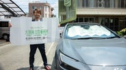 ロゴや企業名が明示されたサンシェードは、自社ブランドの認知度を高める効果に期待して導入しました。
