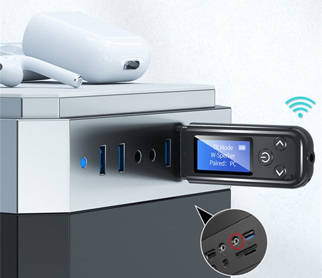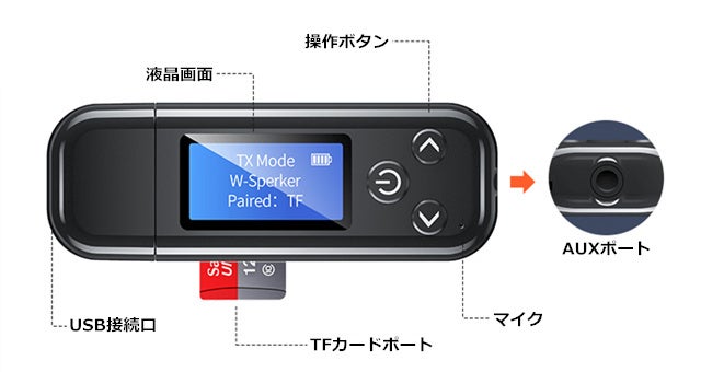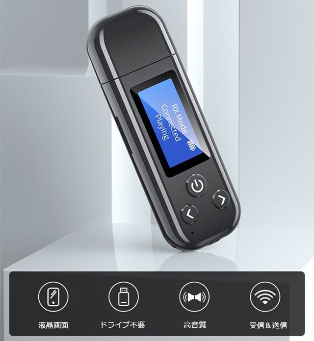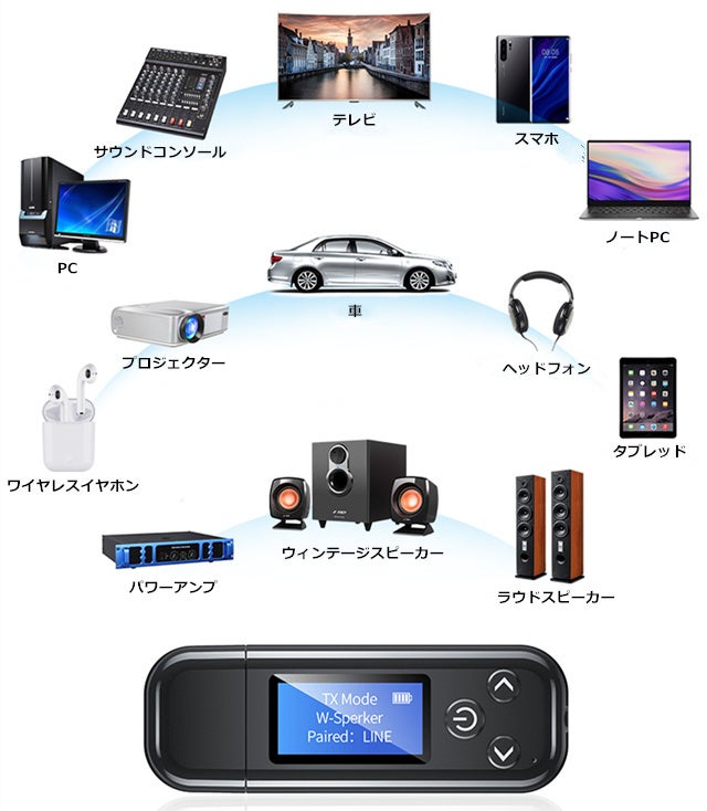 送信モード:Bluetooth非対応のテレビやプレーヤーなどに接続して、Bluetooth対応イヤホンやスピーカーで聞くことができます。
