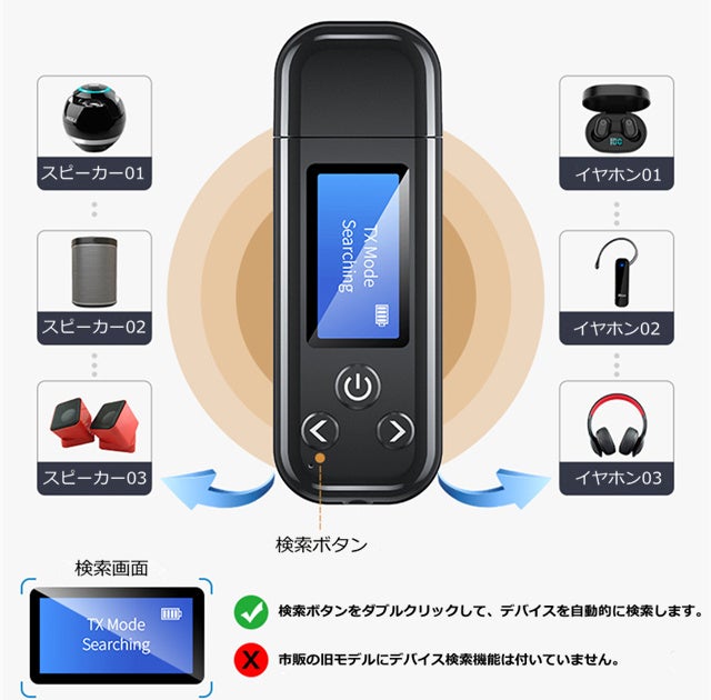 複数のBluetoothデバイスがある場合、検索ボタンをダブルクリックして、接続したいデバイスを検索し、非常に便利です。