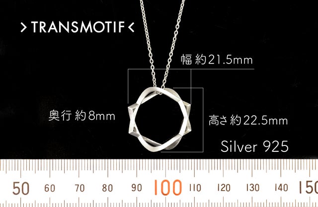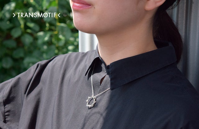 トランスモティーフは、全く違う2つのカタチをあわせ持ち、見る方向によって、見えるカタチが変化する、最新の変身立体理論を用いた、シルバーアクセサリーです。