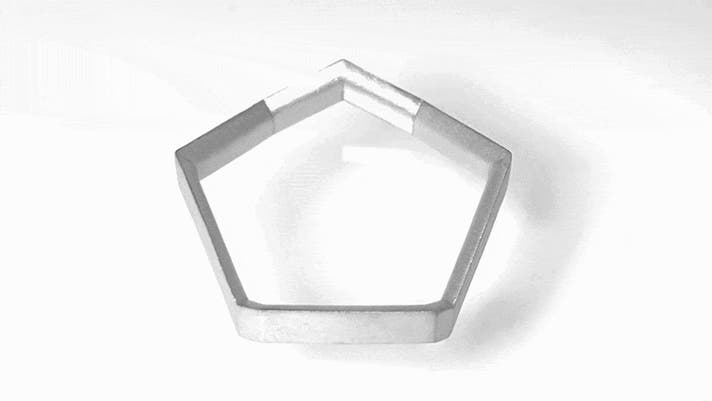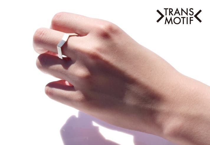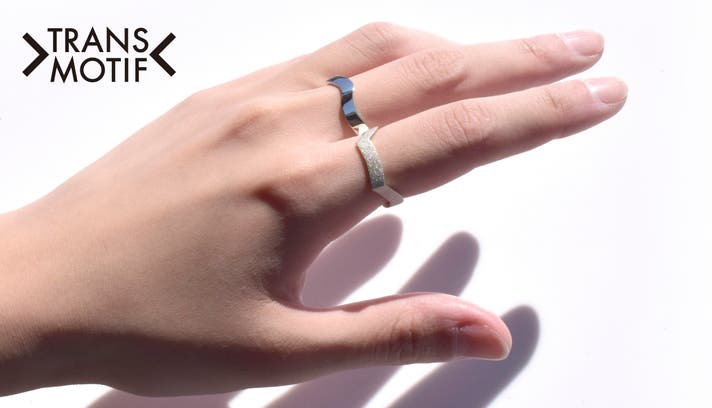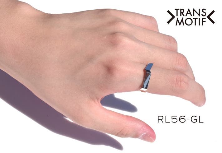 ・直線だけで構成され、指に着けると、ジグザグな折れ曲がりや凹凸が楽しめます。
