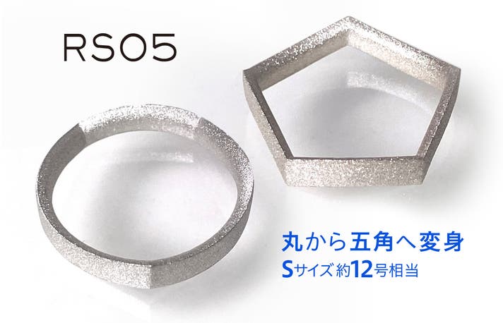 RS05タイプは、丸から五角形へ変身するリングです。Sサイズで、フィット感としては、約12号に相当します。(11号〜13号が守備範囲)