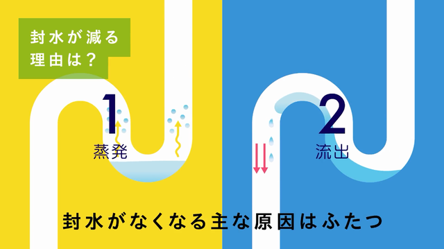 その原因は排水トラップの水(封水)の減少(破封)です。