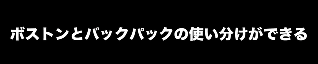 - 利用シーンによってボストンとバックパックを使い分け!ショルダーストラップで肩掛けもOK!