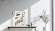 旅の思い出や訪れた場所を都道府県ごとのピースに当てはめ、モダンなアートボードが出来上がります。