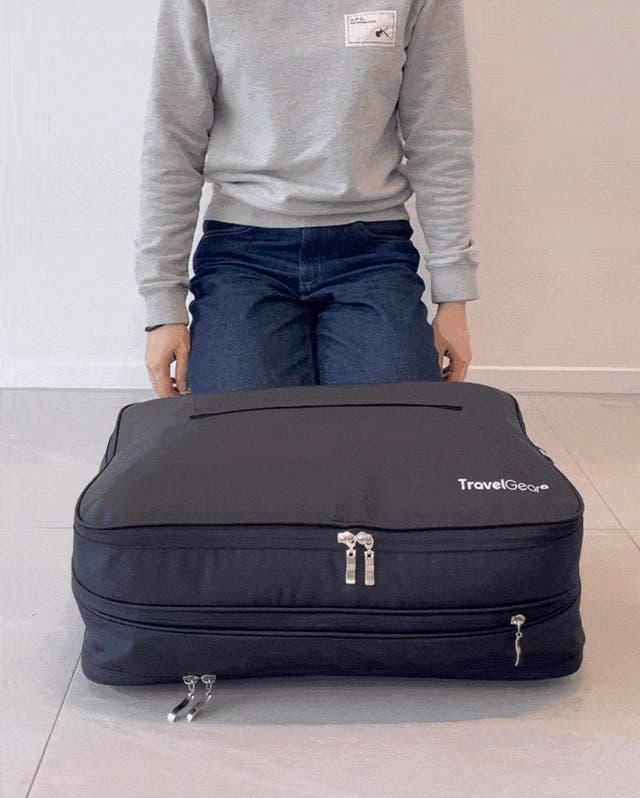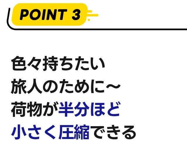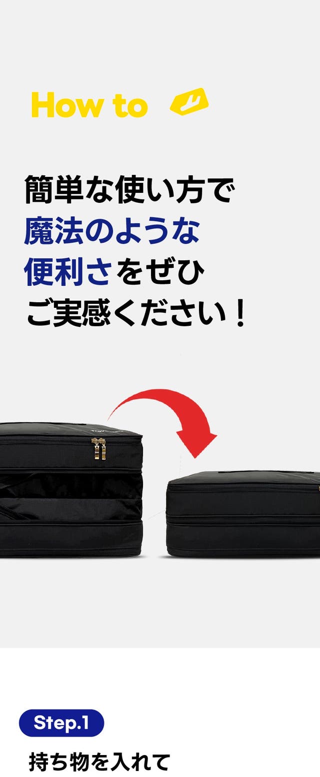 ファスナーで簡単に圧縮できるためかさばる衣類があっという間に小さいサイズに!旅行や出張前のパッキングで大活躍します!
