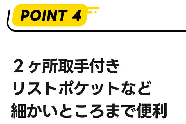 持ちやすい位置とサイズのストラップ付き。荷物パッキング後に簡単に持ち挙げ。キャリーバッグからも持ち出しやすい。