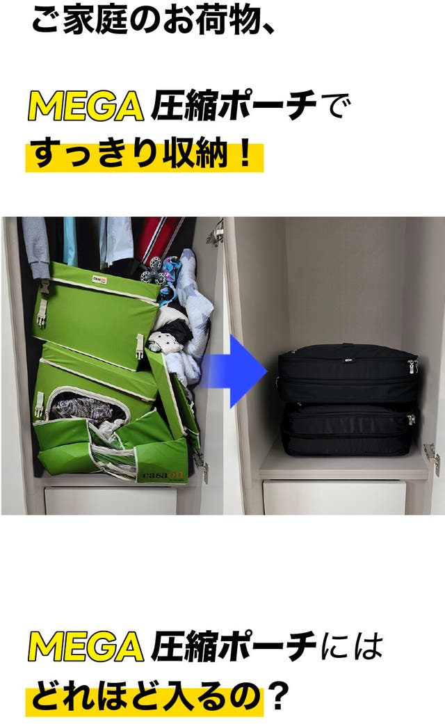- MEGAサイズのXXL大容量・驚異の圧縮力で、旅行や収納の荷物が半分の大きさで収まっちゃう!