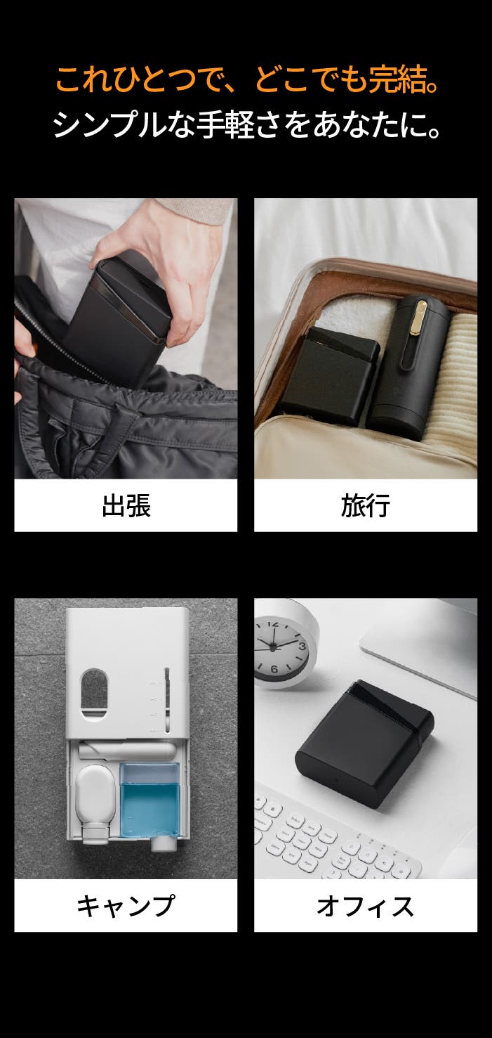 - どこへでも。これ1つで旅が変わる。これだけあれば身だしなみは万全!