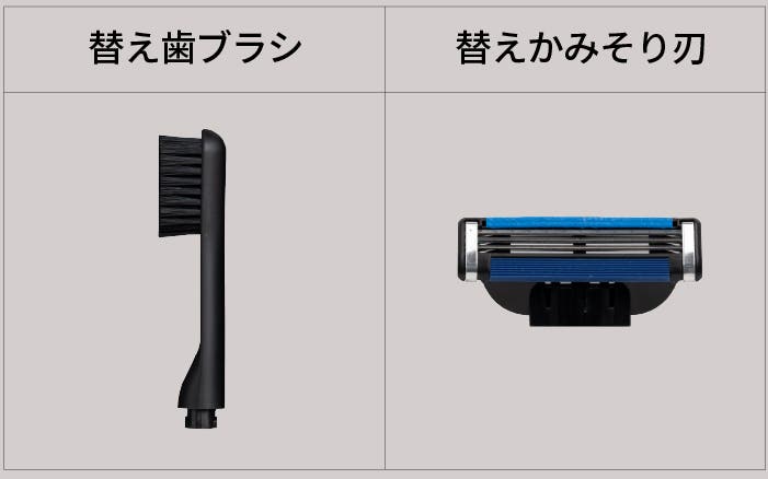 別売りのリフィル(歯ブラシ・替刃)を交換するだけで、ずっと使い続けられる設計です。