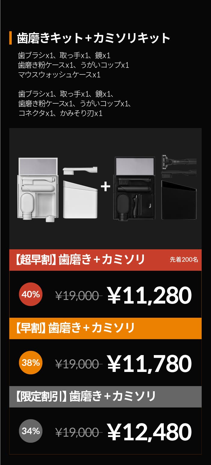 「超早割-限定200名」歯磨きキットx1 + カミソリキットx1