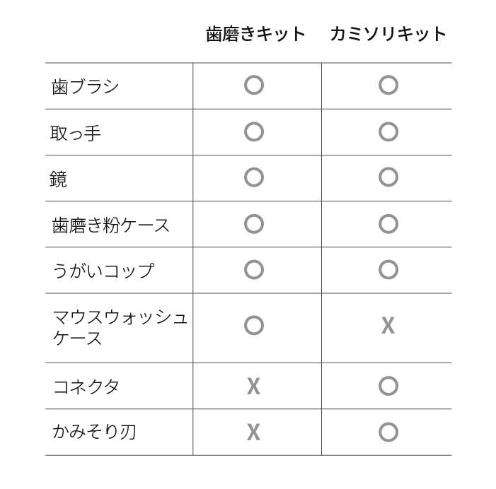 Q. 歯磨きキットとカミソリキットの違いは何ですか?
