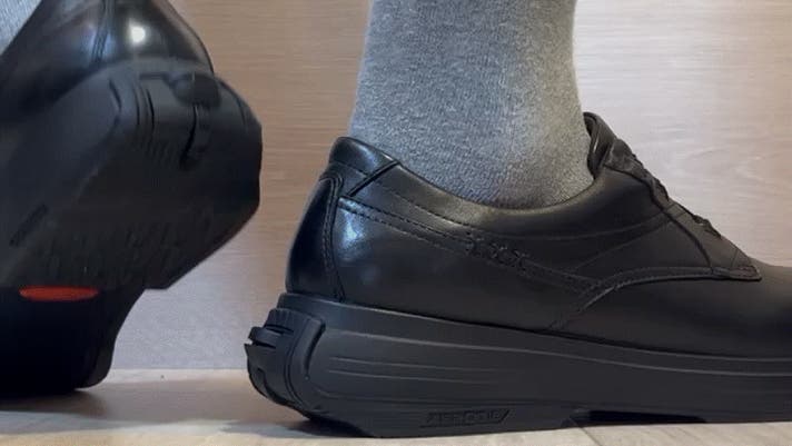 手を使わずに、踵をスライドさせるだけで靴紐が締まります!