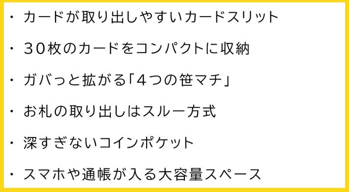 - 独自のスリット構造でカード30枚を縦に収納 パッと見でカードが見渡せる!!