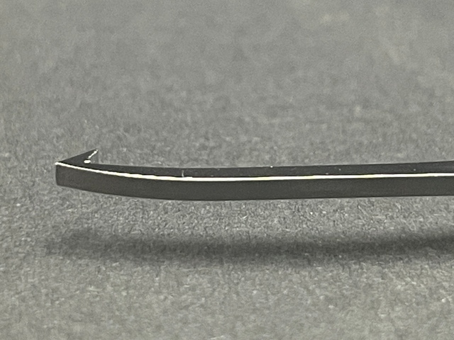 また、このような細い先端の加工を施そうとすると強度の問題が発生してしまうのですが、ここも鉄部を高熱を加えて高温状態にし、急冷することで硬化させる「焼き入れ」という技術で、通常の鉄よりも強度を高めています。
